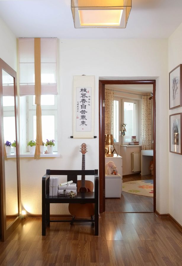 - Гитара, спрятавшаяся в уголке и подчёркивающая творческие увлечения семьи.