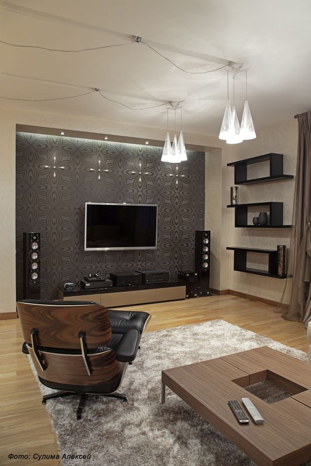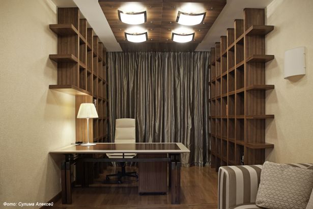 В большой комнате теперь был кабинет с красивыми деревянными полками и зоной отдыха. В гостиной расположился диван огромнейших размеров, домашний кинотеатр и 2 стильных кресла от Лонги.