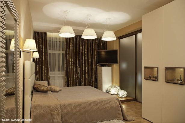У девушки пока нет детей, но комнату для них на будущее мы уже спланировали. В ней объединили 2 части: спальню и игровую. В одной – кровать и стол для занятий, в другой – диван, шкафы и телевизор. Между ними особые книжные полки на тросах. Они создают атмосферу легкости и воздушности.