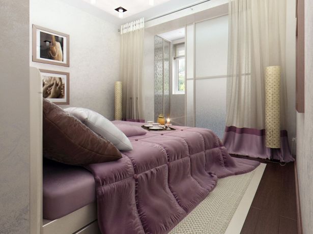 Вторую комнату (мамы) разграничили с помощью простенка со стеклянными перегородками, закатывающимися в него: