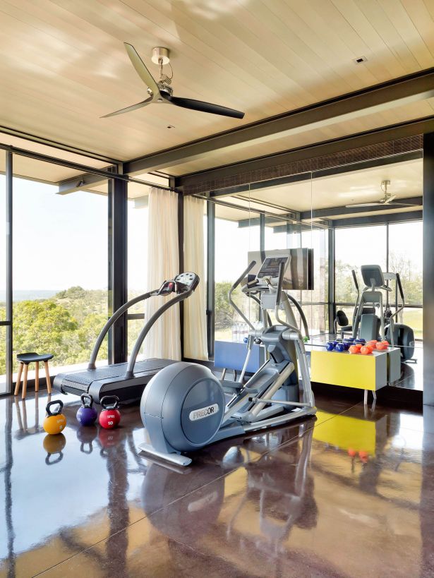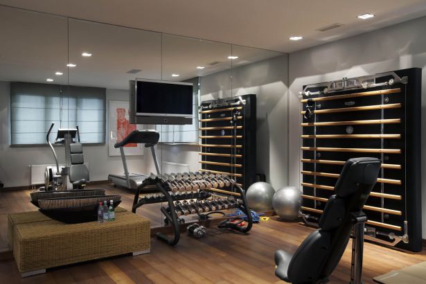 Зал может быть отделен от смежных помещений с помощью стеклянных перегородок или стать частью одной из комнат. Будет разумным расположить его рядом с ванной. Таким образом ты сможешь сразу принять душ, а помещение ванной комнаты станет неким шумопоглощающим буфером, ведь занятия в спортзале могут сопровождаться громкими звуками. Разумеется, если в доме есть полноценная wellness-зона, то и спортзал следует расположить неподалеку. Расположившись рядом со спальней, сразу или со временем зал станет частью твоей утренней жизни.