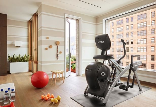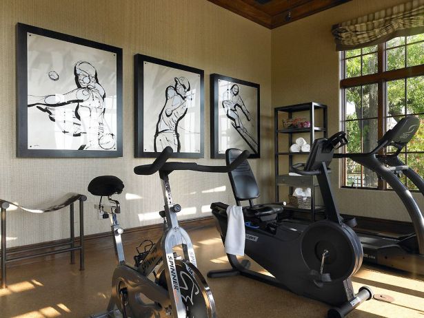 В дополнение к отлично выглядящему оборудованию хорошего качества, я бы повесила на стены большие фотографии в качественных рамках (беспроигрышный вариант). Добавь несколько индивидуальных штрихов, что то, что будет зеркалом твоей души или что то, что будет мотивировать к новым победам. Почему бы не поставить в качестве декора большое напольное зеркало или несколько горшков с цветами на полу?